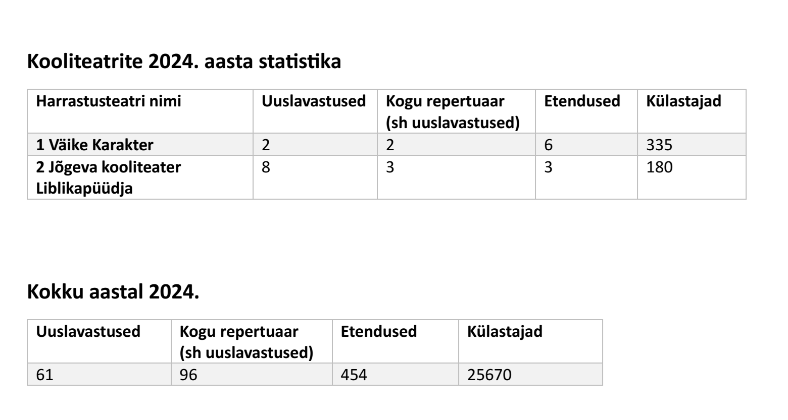 Liikmesteatrite statistika