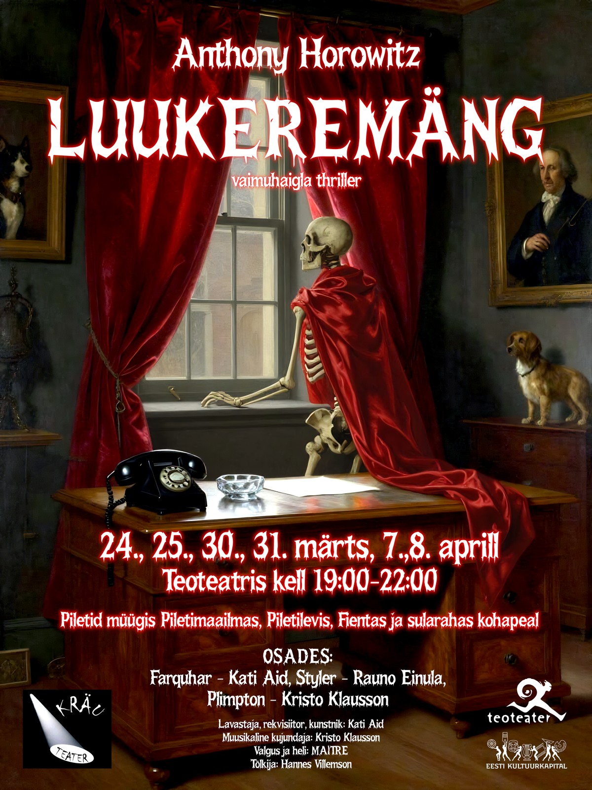 Anthony Horowitz näidendi “Mindgame” (“Ajujaht”) on Kräu Teater keeranud oma võtmesse ning lavastus kannab nime “Luukeremäng”.