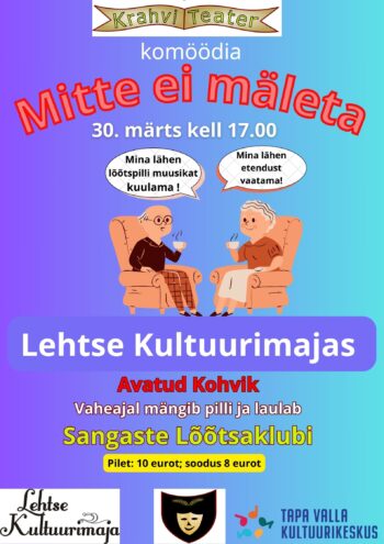 Kahes vaatuses. Vaheajal mängib ja laulab Sangaste Lõõtsaklubi.