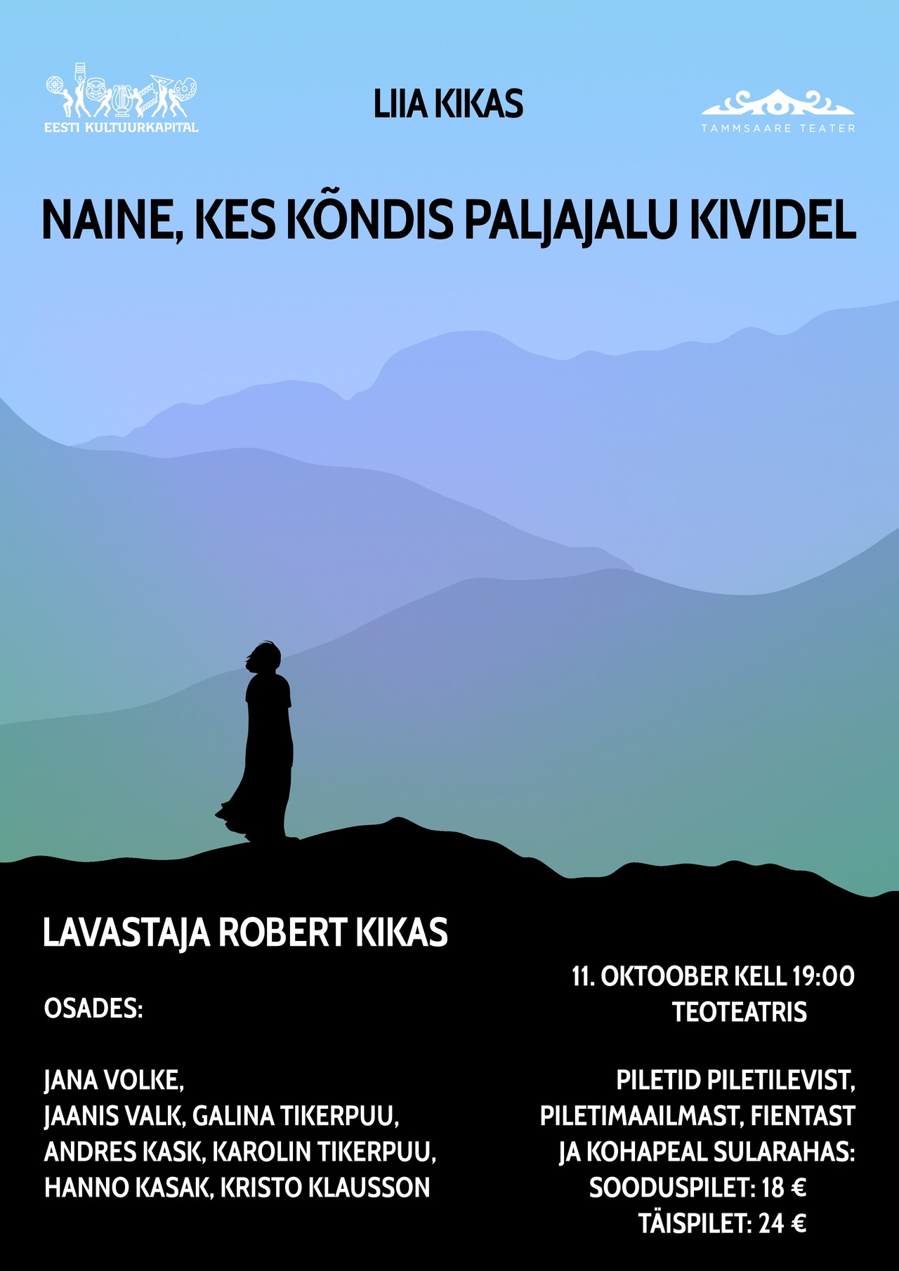 * https://www.piletilevi.ee/piletid/DP3TCHJGTQ/naine-kes-kondis-paljajalu-kividel?design=&shop_provider=tammsaare