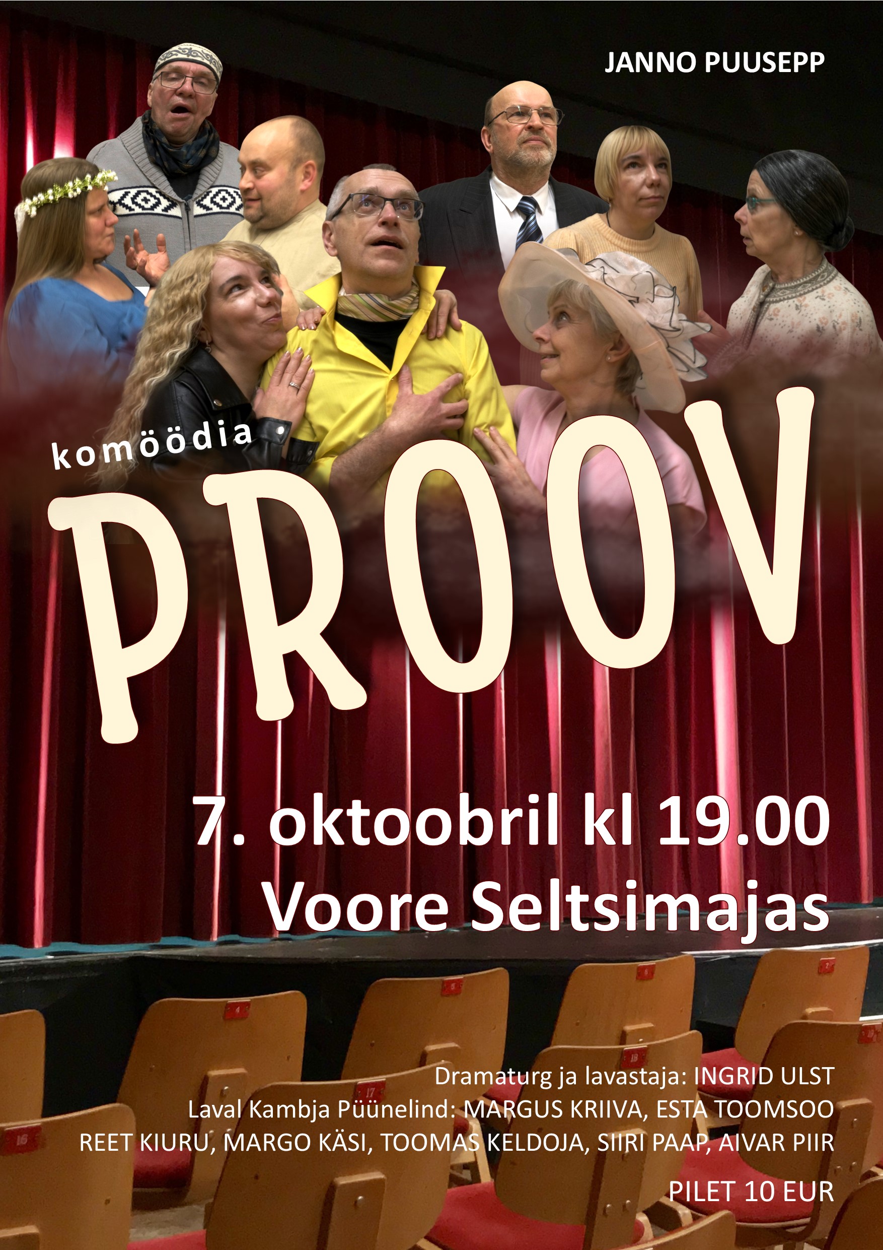 Pilet 10 eurot. Piletid eelmüügis Fientas (https://fienta.com/et/komoodia-proov), vabade kohtade olemasolul ka enne algust kohapeal.