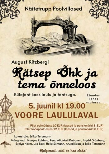 Etendus on kahes vaatuses ja pikkusega 2 h. Pilet eelmüügist 10 EUR (lapsed ja pensionärid 8 EUR), kohapealt ostes 12 EUR (lapsed ja pensionärid 8 EUR). Eelmüük: https://fienta.com/et/ratsep-ohk-ja-tema-onneloos