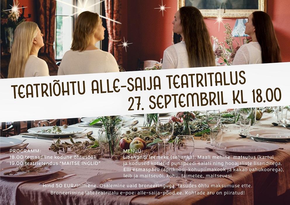 Alle-Saija Teatritalu kutsub vaatama isikupärast tragikomöödiat “Maitse Inglid”, mille juurde pakutakse temaatilist kodust õhtusööki.